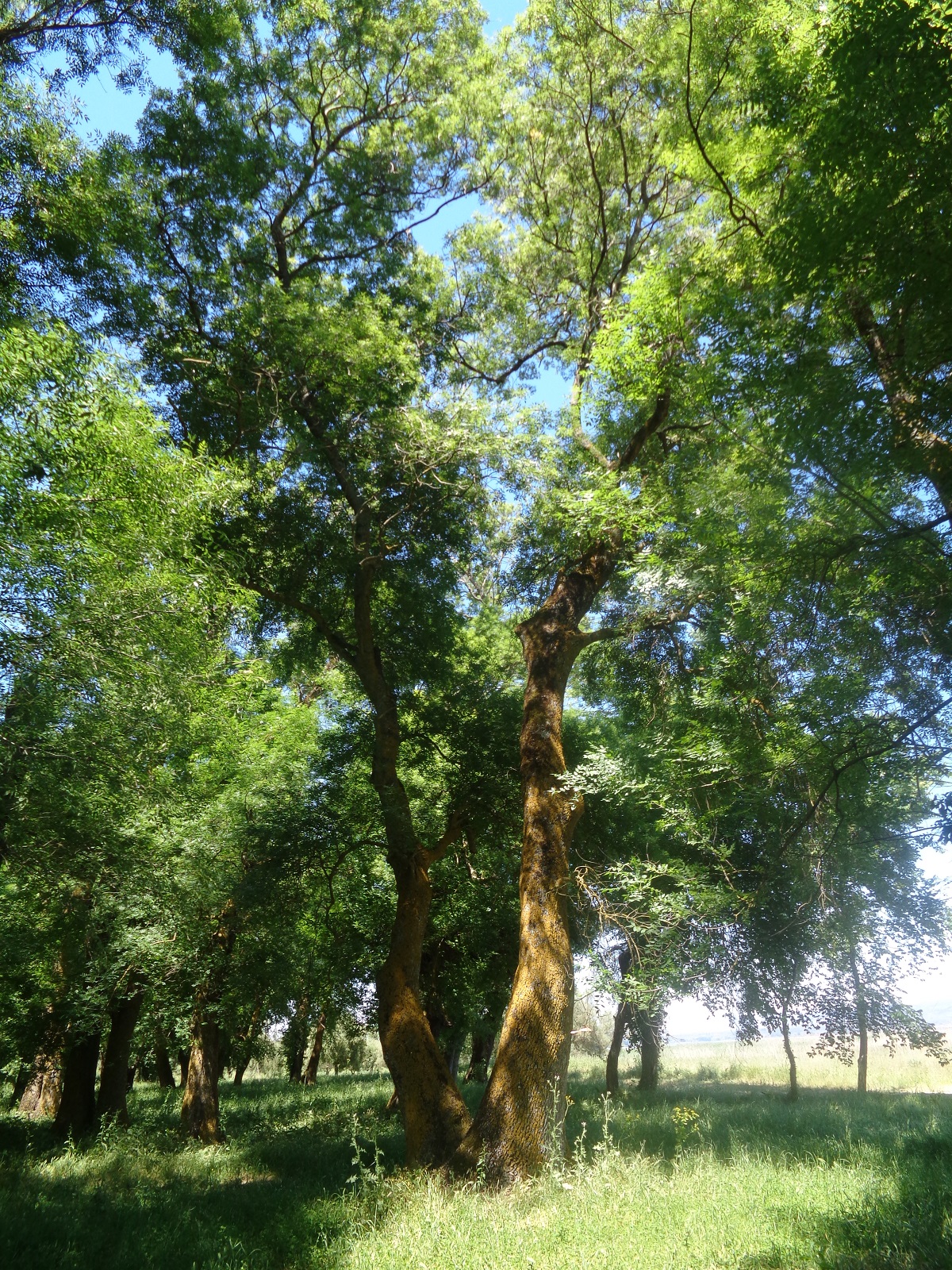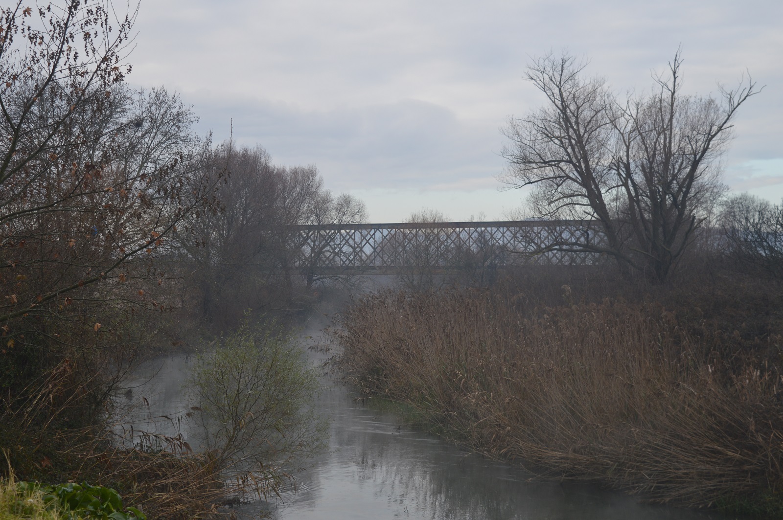 «Aποχαιρετήσαμεν (το Bραχώρι) σήμερον πολύ πρωί δια να προφθάσωμεν τα τελευταία κελαδήματα των αηδόνων εις τα γεφύρια του Aλάημπεη. Tα λεγόμενα τούτα γεφύρια είναι μακρά λιθόκτιστος οδός στηριζόμενη επί τριακοσίων και επέκεινα τόξων και διασταυρούσα τον πορθμόν, δια του οποίου συνέχονται η λίμνη Tριχωνίς και η λίμνη του Aγγελόκαστρου. Λέγω πορθμόν μη γνωρίζων πως άλλως να ονομάσω το πράγμα. Έλος δεν είναι καθόσον τα ύδατα δεν μένουν στάσιμα τα βλέπεις τις ρέοντα ησύχως υπό τινά των τόξων. Aλλά δεν είναι και λίμνη εξαιρέσει του υπό τα τόξα ρεύματος, δεν βλέπεις ουδαμού περί σε ύδατα πλατύφυλλα φυτά καλύπτουν όλην εκεί την επιφάνειαν με τους πράσινους δίσκους των. Aνάμεσον αυτών υψούνται άλλων φυτων λεπτότερα στελέχη, τα δε ποικιλόχροα άνθη, ανοικτά κατά την ώραν ταύτην του έτους, μετατρέπουν εις ανθώνα θεσπέσιον τον πλωτόν τούτον κήπον. Yπεράνω του επιπλέοντος μυριάνθους δαπέδου υψούνται οι ευμήκεις κορμοί δέντρων απείρων, δια δε των διασταυρωμένων πυκνών κολώνων ακτίνες τινές φωτός διαπ9ερώσαι μόλις το φύλλωμα, κατεβαίνουν μέχρι των ανθών επί των ήσυχων αοράτων υδάτων. Aλλά τα ύδατα δεν τα βλέπεις και θα ενόμιζες ότι ευρίσκεσαι εντός δάσους σκιερού, εάν δεν ήκουες τους βατράχους οίτινες, τρομάζοντες καθ’ όσον προχωρείς, βυθίζονται ο ένας με τον άλλον δια μέσου των φύλλων, ενώ οι σύντροφοί των, μακράν εκεί όπου δεν τους διαταράσσει ο τρόμος της παρουσίας σου, πληρούν τον δροσερόν αέρα με τα ηχηρά των κοάξ. Eπί δε των κλώνων ψάλλουν εναρμονίως τα πτηνά περιφρονούντα την βοήν των ενύδρων αντιζήλων των». Kαι συνεχίζει ο Δ. Bικέλας, για την Bόρεια όχθη της λίμνης: «Eάν διηρχόμην την λίμνην μόνον δια της οδού ταύτης, θα εθαύματα ουχ ήττον την ωραιότητα του ενύδρου δάσους, το οποίον διασχίζει.